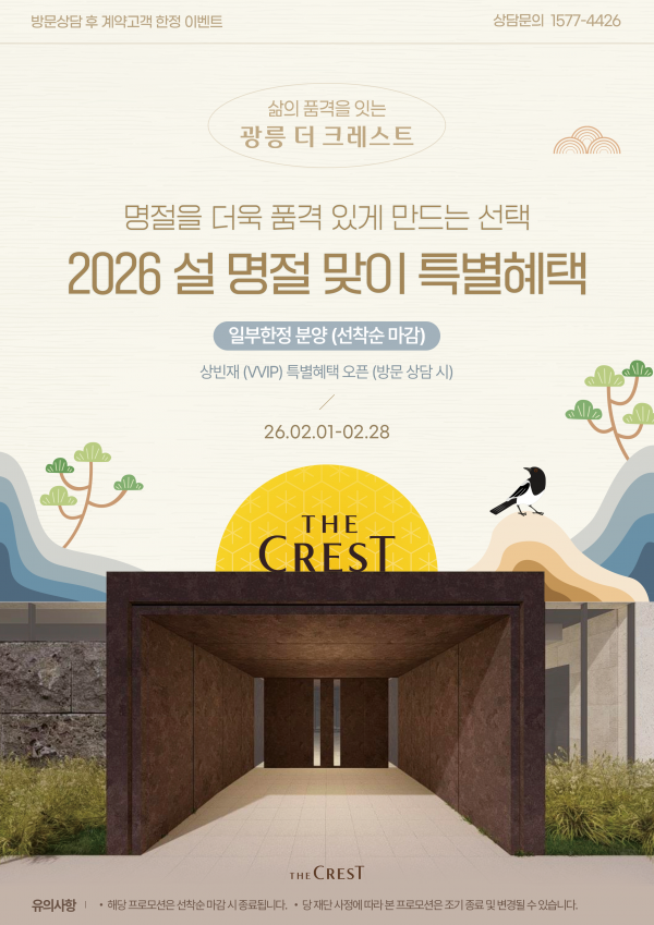 병오년 새해 설 명절을 맞아 가족의 안식을 더욱 품격 있게 준비할 수 있도록 <2026 설 맞이 특별 프로모션>을 진행합니다.