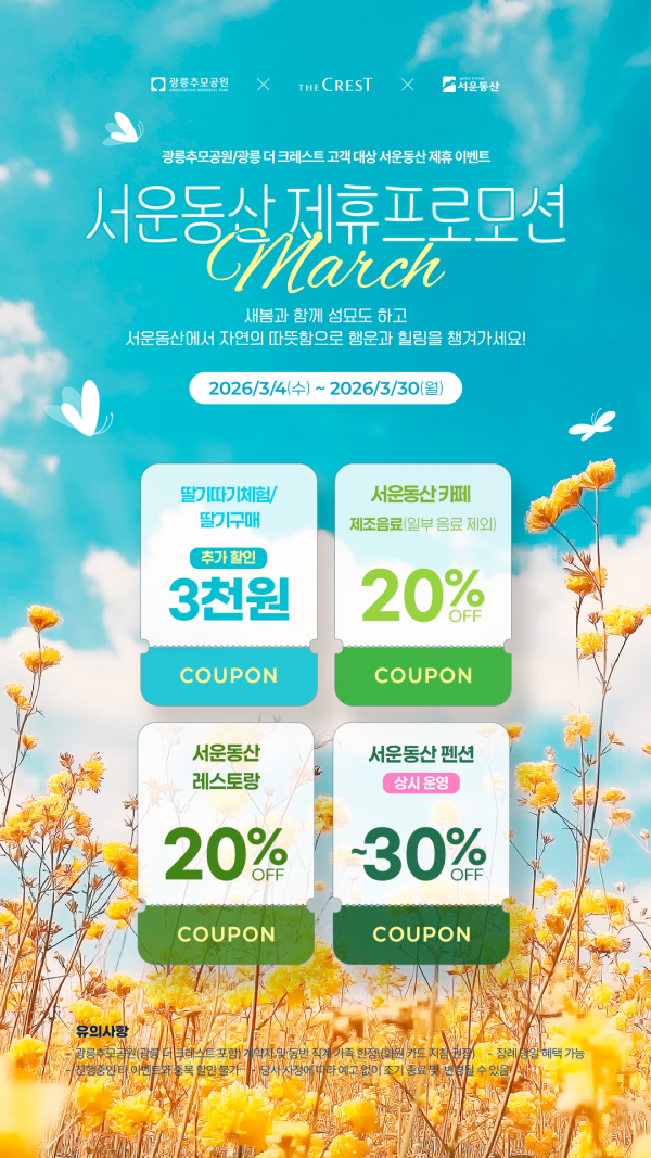 [제휴 프로모션] 광릉추모고객 회원 대상 서운동산 3월 혜택 안내(3/4~3/30)
